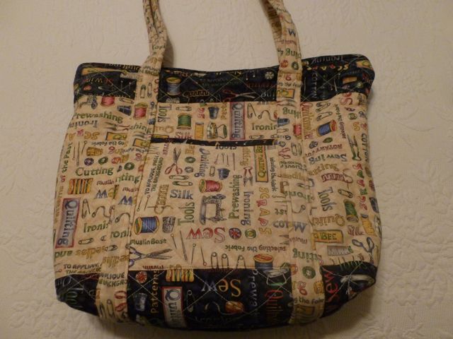 This casserole carrier was made with a commercial pattern, using less than a yard of two different fabrics. The cute sewing print is perfect for potlucks at the quilt or sewing club.