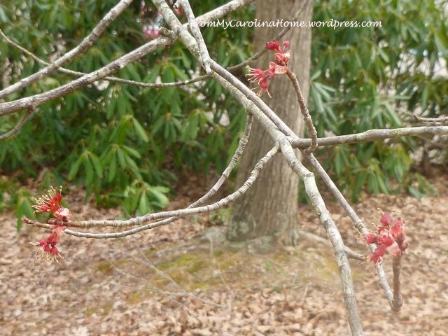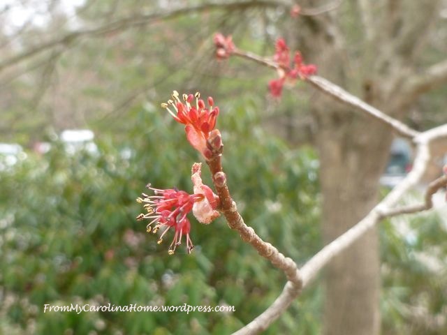 We hiked a total of about three miles, out and back. Around the Folk Art Center I did find some flowers. These little rusty colored flowers are on trees now. I had to research what they were and found out they are Red Maples, the same trees that turn gorgeous red in the fall.