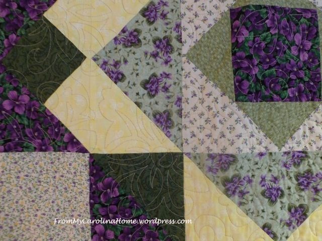 It is so lovely, I don’t want to stop looking at it! I love purple and green together and the yellow is nice also. I bought some charm packs and jelly rolls with similar colors but can’t remember the name just now.