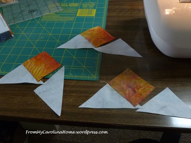 Lay out the little HST units, again there is only one way this is correct. Pin the side you want to sew. Open them up and press.