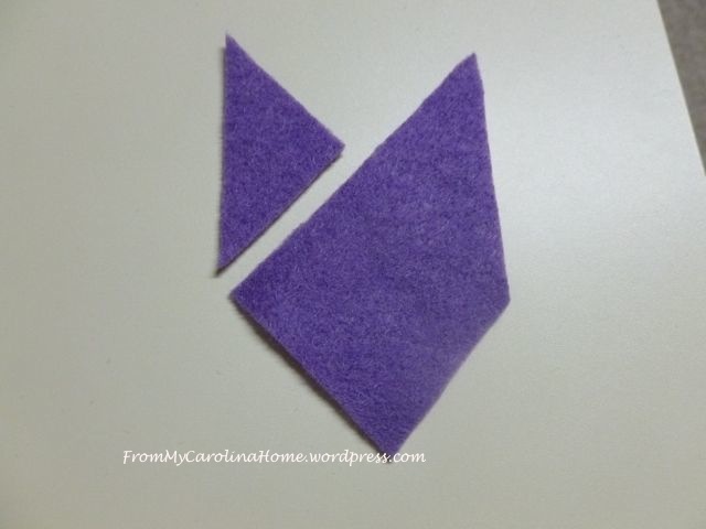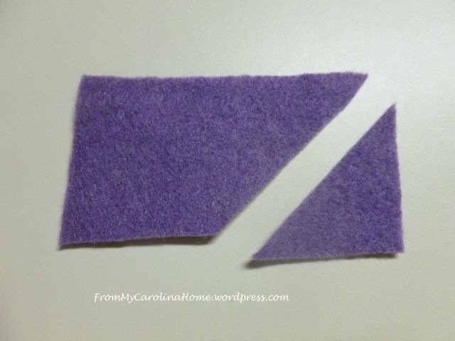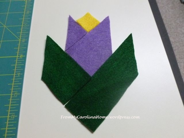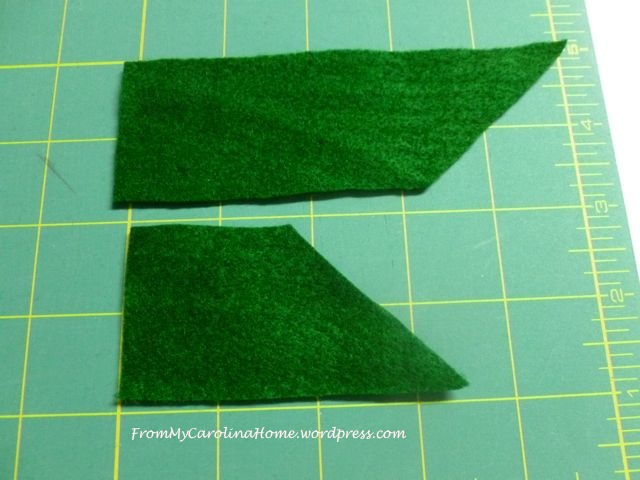 I started by making the tulips and the green calyx base. I used felt for the large green and gold pieces as I wanted brighter colors and large pieces. Start by cutting a rectangle 2 inches wide x 3-1/2 inches long.
