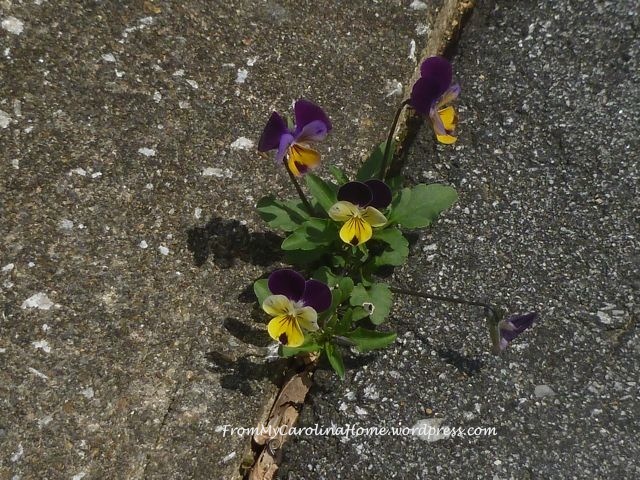 Have you ever heard the saying ‘bloom where you are planted’? This little jump-up volunteer is blooming valiantly in a crack in the driveway.
