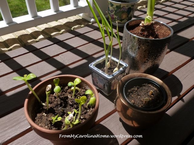My little garden pots are making progress too. The squash seeds are coming along, and the garlic is very tall now. I put them outside for a bit to soak up a little sun. It is still too cold at night to leave them out, but soon I will be able to do that.