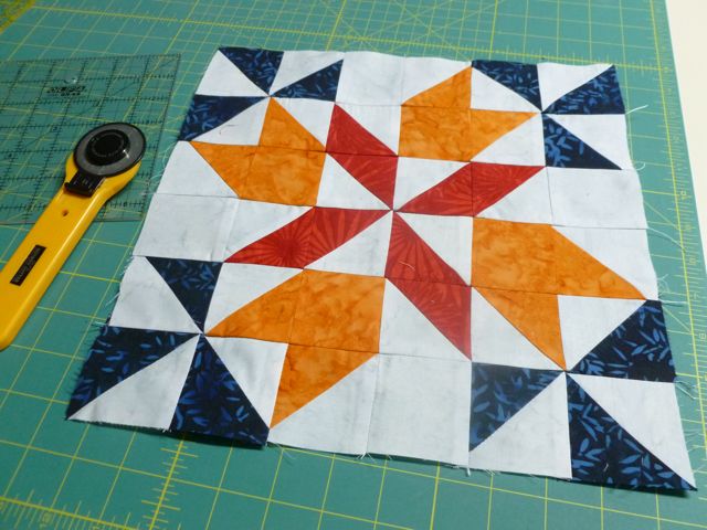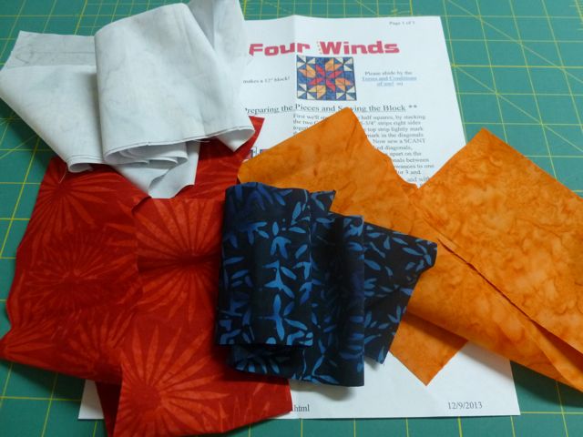 Seems like there is a theme developing. The ladies at the LQS were hinting about this at the April meeting, maybe we are doing all blocks of earth elements? I guess I should have paid better attention to that part of the program, LOL! Anyway, this months block has a real curve ball thrown, as we are to change the colors in the block. The block chosen for May is called Four Winds, pattern available on Quilt Blocks Galore – http://www.quilterscache.com/F/FourWindsBlock.html