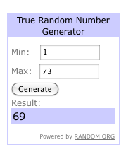 But now, what you’ve all been waiting for!! The number of entries was put into the random number generator at Random.org. It has spoken, and the winner is