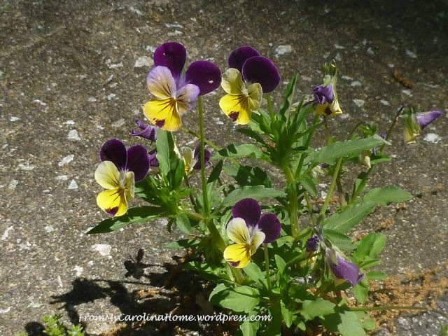 Every January, my mind goes to starting seeds for the spring. I cannot tell you how many years I have done this, most of the time failing miserably. Either I plant the seeds too soon, or the seedlings get root rot, or never come up at all. It is why the owner of my local garden center likes me so much, I always end up buying seedlings. Yet, these little jump-ups appeared in the driveway last spring as complete volunteers.