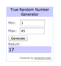And now, the winner of the DVD. I took out my own comment and multiples from the same reader, and then the Random number generator picked….