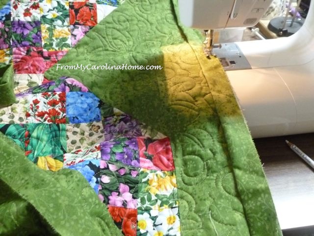 When the quilting was done, I decided to bind it in the same fabric for continuity.