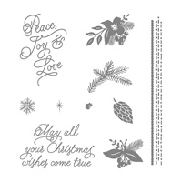 The lucky winner will receive this set of stamps on wood bases called Peace This Christmas containing 10 rubber stamps, This Christmas Cardstock Pack and two Classic Stampin’ Pads in Cherry Cobbler and Garden Green – everything you would need to create lovely cards this year!