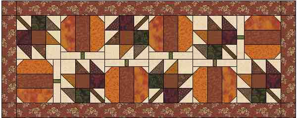 Autumn Jubilee continues with table runners for your two block designs. How you put this together is up to you, and the size you need for your table. I’ll give you several layouts, remember that each block finishes at 6 inches square, so measure your table to see how many you need to get the size you need. Then you can improvise! Our wonderful giveaway today is sponsored by The Fat Quarter Shop! Read all the way to their logo to see how to enter.