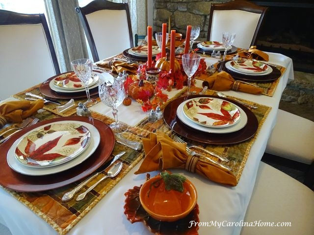 That’s just beautiful! I love those plates too! I get a lot of my salad plates from Pier 1 – they are hard to resist and add that nice seasonal touch. You’ve reminded me I need to get my Fall plates out. I just adore the colors of your table setting! Beautiful!