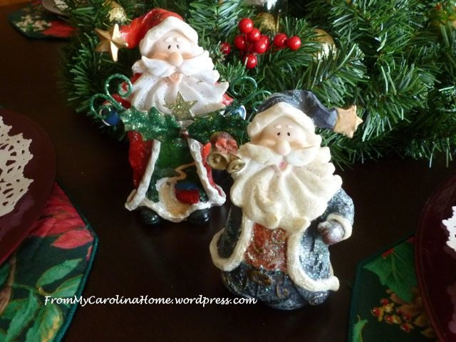 I have a collection of small Santas, too as well as larger fabric ones. I also have a snowman collection (much bigger than the Santas). Today I plan to get out the Santas and the table top trees. I no longer put up a tree. I want to find some way to display some of my favorite ornaments. But first my husband’s political memorabilia clutter has to be dealt with.