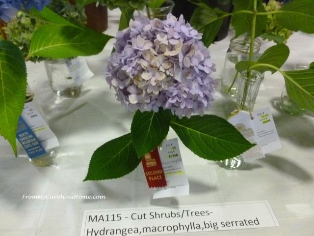 And so did my hydrangea bloom, that popped open the same morning! I took it as a whim as well, and was just blown away when it got a second place ribbon, considering the competition!! I think it was its color that did it, as most of the others were greenish with the dark pink that is typical for hydrangeas at the end of the blooming season.