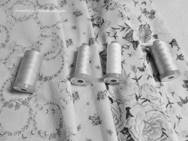 When you look at them in black and white, they are all almost exactly the same value. Sure, they can be used together, but I’ll make the background a pure white to add contrast and interest. Without any dark values, the final project will be what is called a ‘low volume’ design, which is fine. Sometimes that is what is wanted.