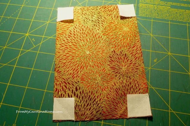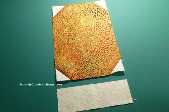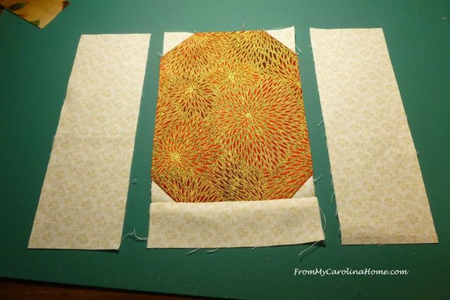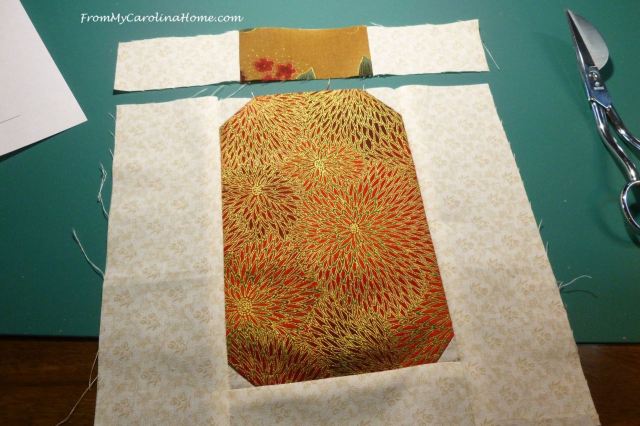 It makes up fairly quickly, beginning with the jar section, add the squares to angle the corners. Sew on the diagonal and trim.