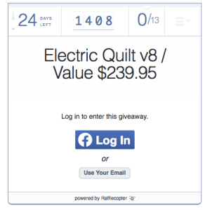 You can see the amazing line up of other prizes you might win on Marian’s post here including the grand prize of a copy of EQ8! Click on the image to get to the Rafflecopter entry. You can also save 20% during the Row Along at Electric Quilt for any of their products by using the code ROWALONG20 at checkout.