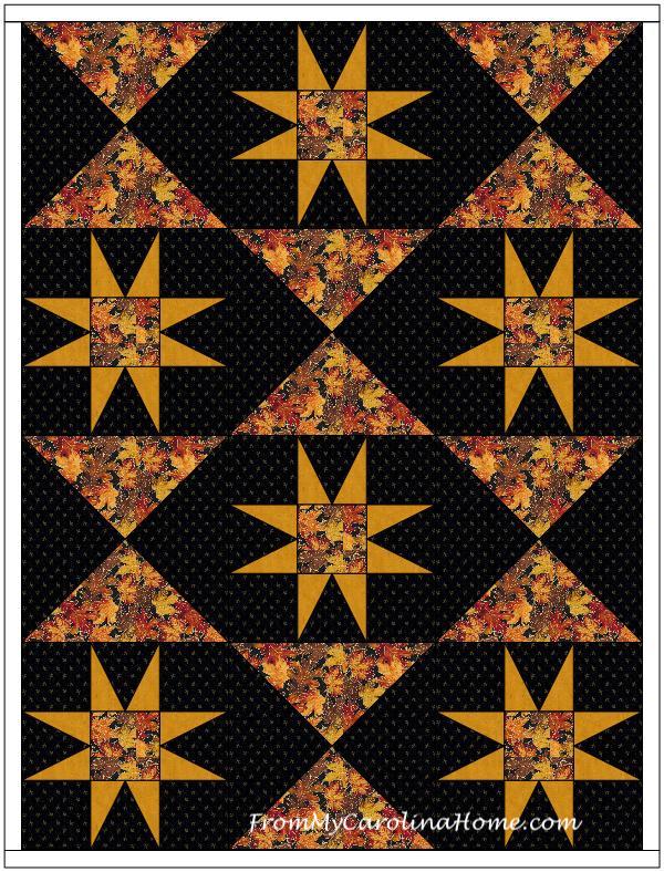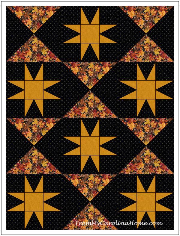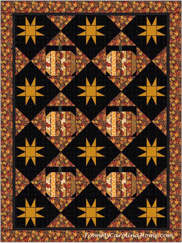 I really like this design as a full quilt, especially with the fall fabrics on a black background and the pumpkins added in! Thanks for some great ideas, Carole!