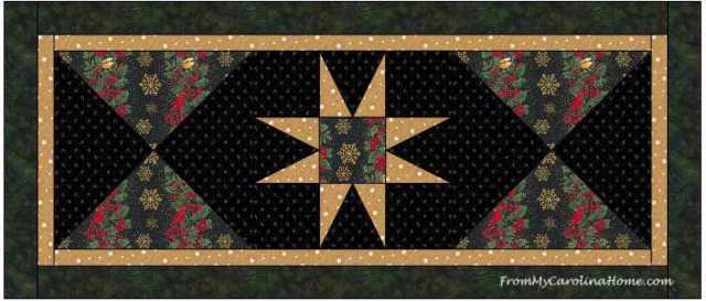 Good timing for doing the tablerunner in Christmas themed fabric. And, your gold star fits so well!
