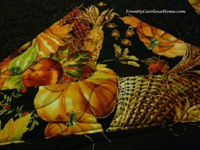 Your Harvest table runner just glows. I think a Christmas one with a poinsettia print would also work well and could be used through January. Thanks for all your effort with Autumn Jubilee.