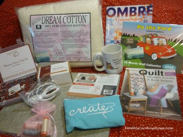 For locals, and those within driving distance, giving the project just one hour of your time will qualify you to win one of the fabulous door prizes! Or, you can sew at home and bring your blocks to the event to be entered in the hourly drawings for some fabulous prizes at the event that will thrill you! The first 15 people in the door at 9 am and ready to work will receive a Hobbs Wool Batting 18-inch square sample, large enough for a table topper. The first 15 people after 1 pm will also receive one!! Door prizes will include a queen size Quilter’s Dream batting from Quilter’s Dream, Quilt Modern Curves and Bold Stripes and Ombre Quilts 6 Colorful Projects books from C&T Publishing, Aurifil Threads, a Wool Press Mat, Ultimate Presser Foot Set, and a Sew Bright sewing machine light kit from MadamSew, along with a special gift pouch of goodies, coffee mug and more from me. Yes, you must be present to win.