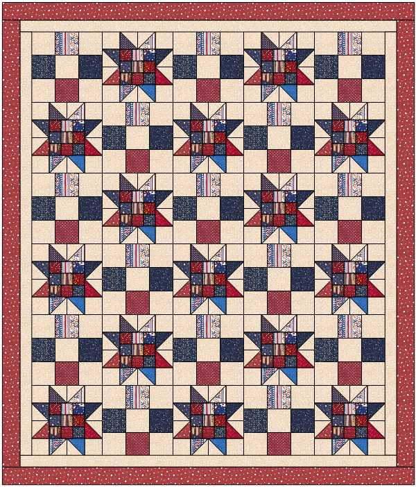 Here is the pattern we will use for our sew day, utilizing all the star blocks sent in and designed in EQ8. I call the pattern “To The Nines” because it uses two different sizes of nine-patch. “To the nines” is an English idiom meaning “to perfection” or “to the highest degree” or to dress “buoyantly and high class” (Wikipedia). Since most of our quilts are made from donated scraps, I did the cutting and fabric requirements that way. The pattern lends itself well to assembly line work, having someone cut, while others sew, and then others assemble tops. It also works well to make kits for the stars, and sew at home 9-patch blocks.