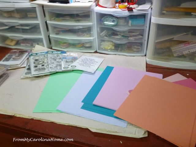 On the stamping workbench, I’m starting the last cards that will be needed for the Safelight Project. I have so much paper that this won’t even make a dent. My latest order from Impression Obsession has arrived and I am excited to use the new stamps.