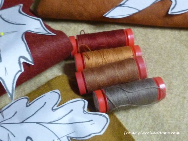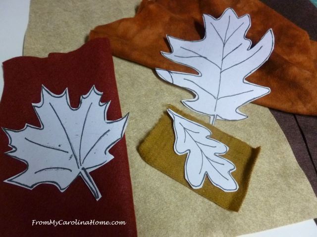 I have made a few wool felt projects like this, several snowman Christmas ornaments and some travel-sized pillows in the past. I like working with the wool felt rather than the acrylic, as it looks richer and is more supple, IMHO. Thanks for the larger size leaves-just seems easier on my arthritic hands these days! One tip I can share is to trace the pattern onto the non-waxy side of freezer paper, cut out the shape, leaving a small edge of background and press it onto the felt with a warm iron. (Test this on a scrap before using on your project). Cut out the shape on the line and remove the freezer paper. It sticks just enough so you dont need pins in the small piece to cut it out, which can distort the shape. I have had good luck with this. I use short pins to secure it to the background while I am sewing it on so my thread doesn’t constantly get caught in the pin heads. (Please note that this is Freezer Paper, not parchment paper, which I have not tried.). Hope this helps!