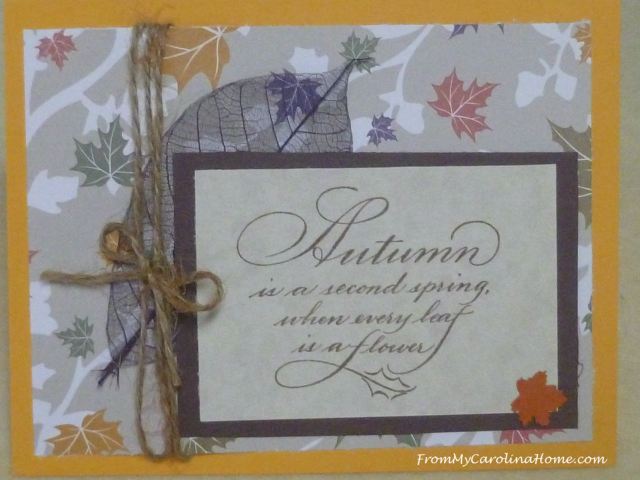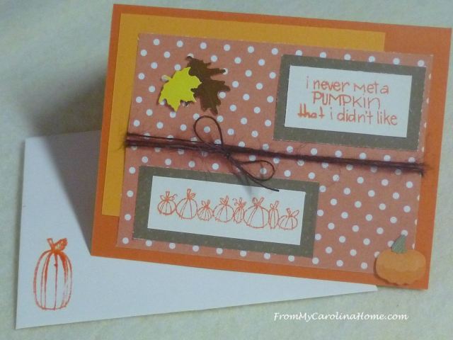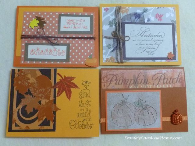 I make cards and scrapbooks, and I need to pull out my pumpkin and leaf stamps. I enjoyed seeing your cards.