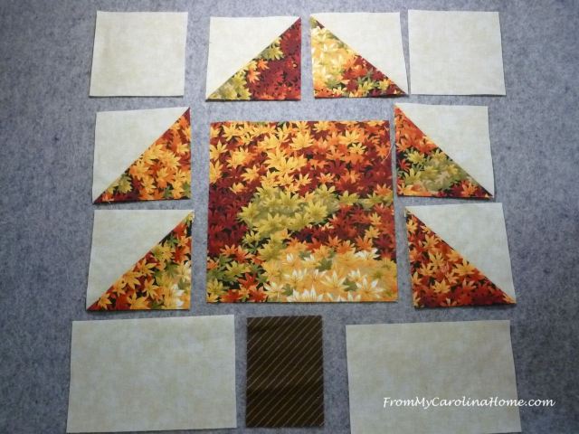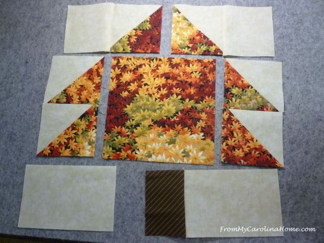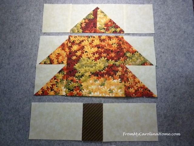 The row for today is a line of trees in full fall foliage. You’ll need the following pieces cut for three blocks-