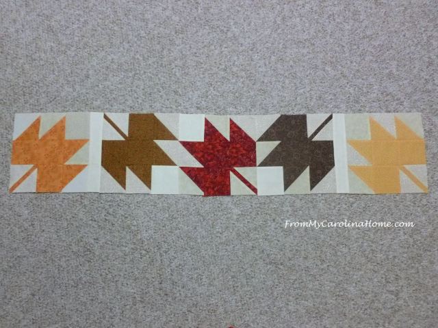 The leaves row has five blocks with two spacers. The blocks will finish at 9-inches.