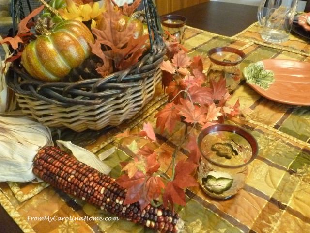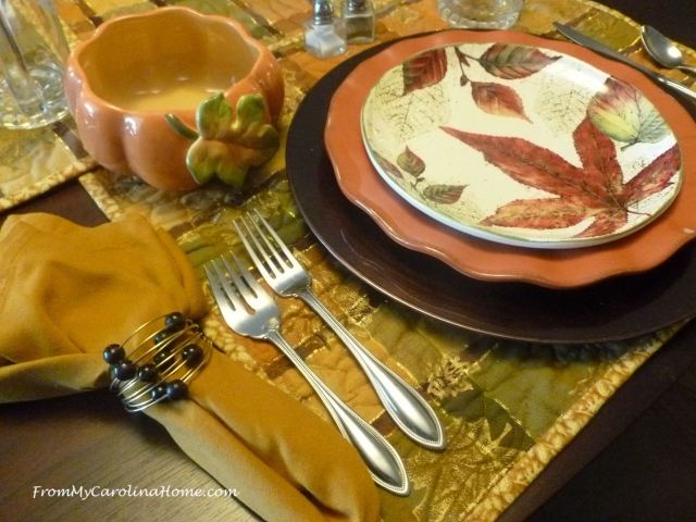 Love your tablescape! I enjoy fall colors……and the leaves are falling too soon EVERY YEAR!