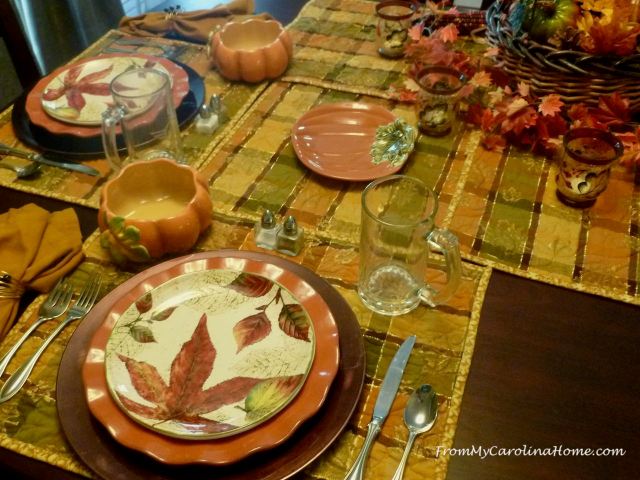 Your table settings are beautiful and inspiring! I just love fall table runners and toppers and have several that I use. My current favorite features pumpkins! I also have some with leaves and turkeys. It seems that Christmas decorations come out earlier every year but I would rather enjoy the fall things for a while.