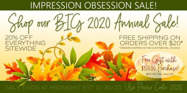 Impression Obsession has 20% Off Everything Sale! Use promo code 2020. Plus get free shipping on orders over $20, and a free gift with orders over $50!! My order is in!!