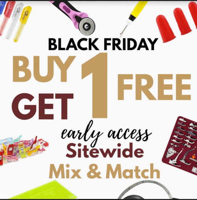 MadamSew has great deals on their Wool Press Mat, Ultimate Presser Foot Set, and MadamSew’s Weekly Deals. Black Friday deal is a one day BOGO sale!!