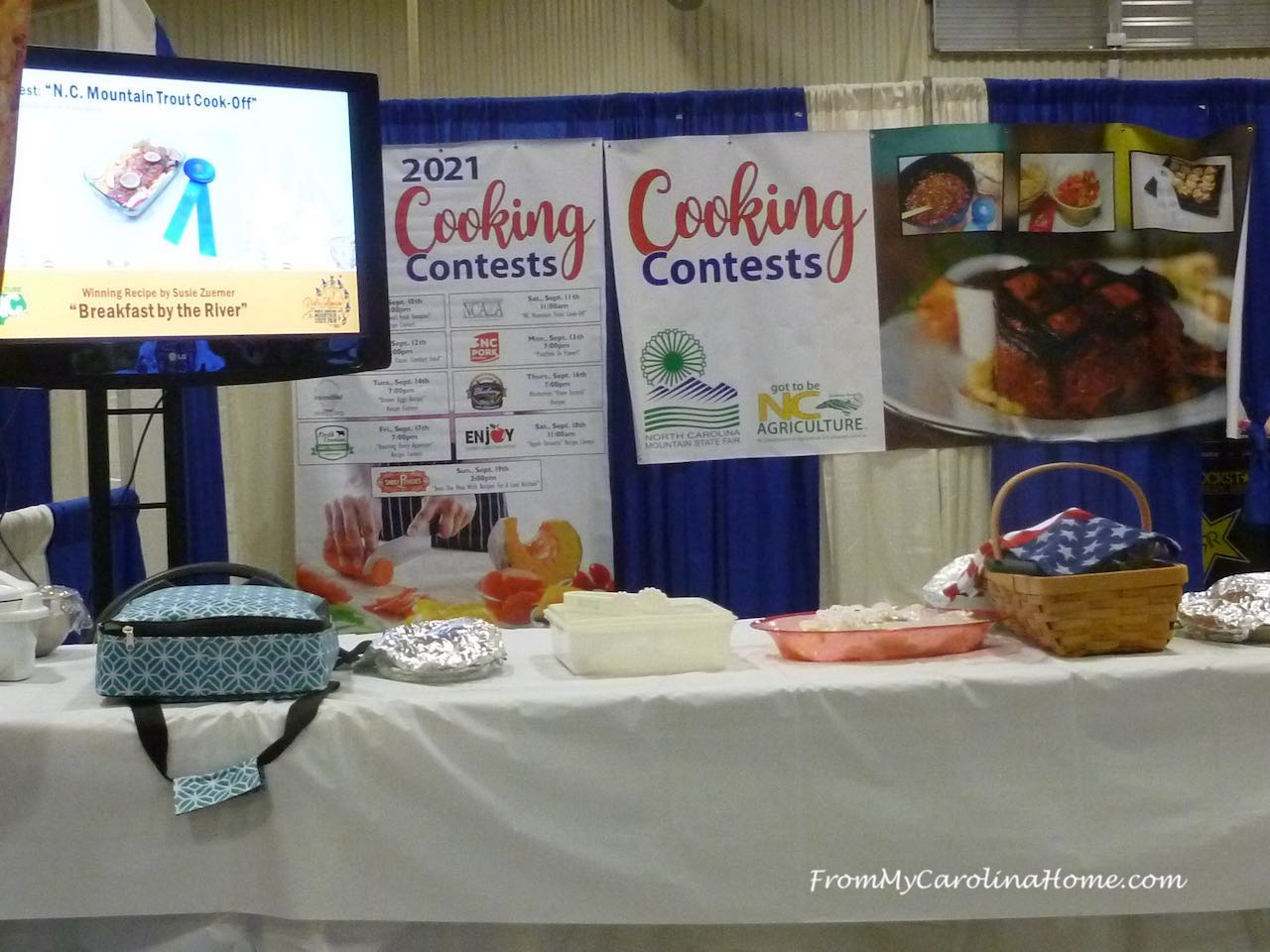 I turned in my dish, and off we went to see more of the fair. Coming back for the announcements of the winners, we were surprised to see a film crew there doing a story for a Raleigh TV station. But soon, the host of the show was done speaking to contestants and the announcements began. I was thrilled to win second place!