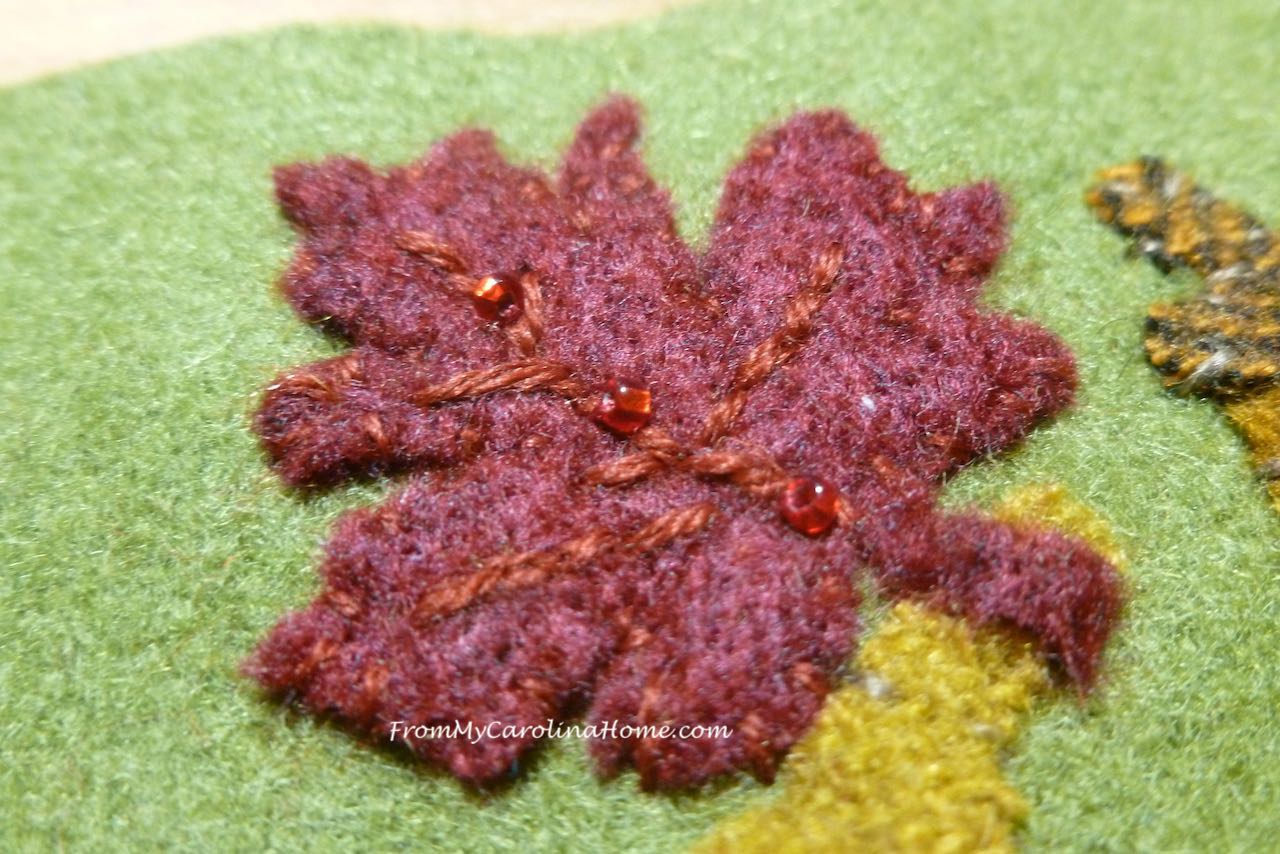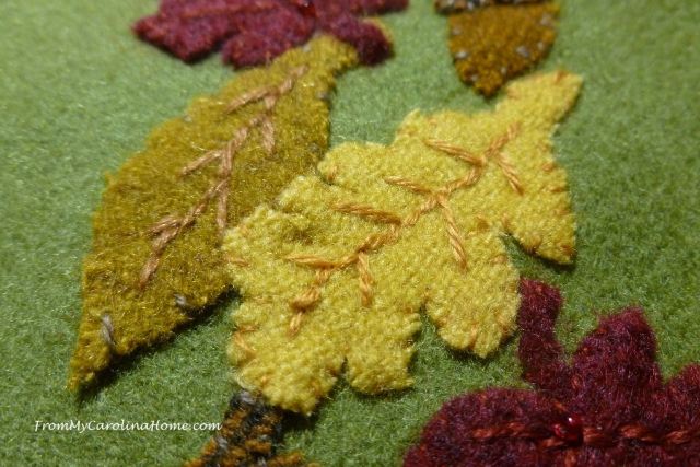 Did you get your wool applique done from part 1? When we left off, the motifs were stitched to the base. If you missed part 1 that has the pattern, click on Autumn Jubilee on the sidebar and go back a few posts.