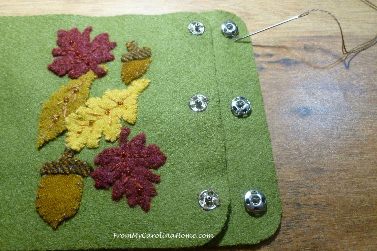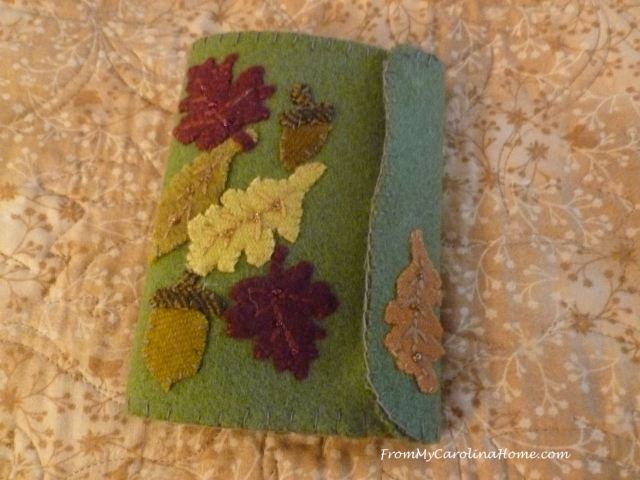 Today we embellish and finish the needle keeper. Get out your stash of seed beads and other little lovelies, and add some bling to the project as you wish. For me, I put veins on the leaves with wool thread.