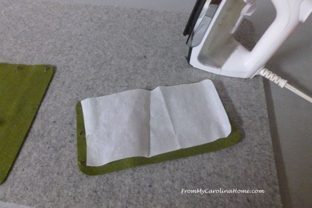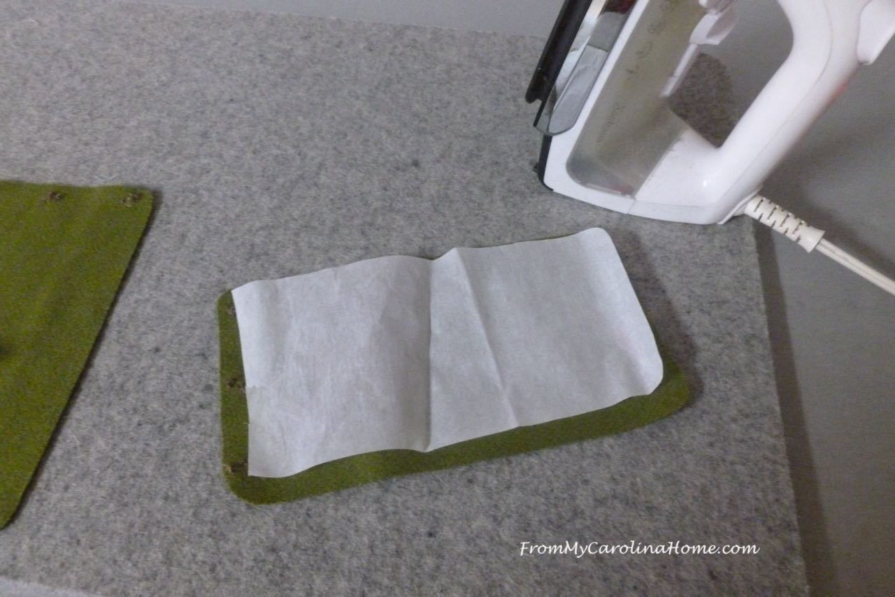 When both sides are done, iron fusible webbing to the top side. Peel off the paper.