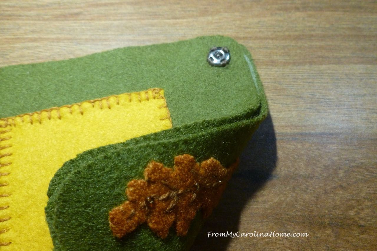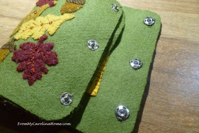 Now here is the tricky part. Make sure that the lining with the snaps has the snaps on the same edge as the single leaf on the top piece.