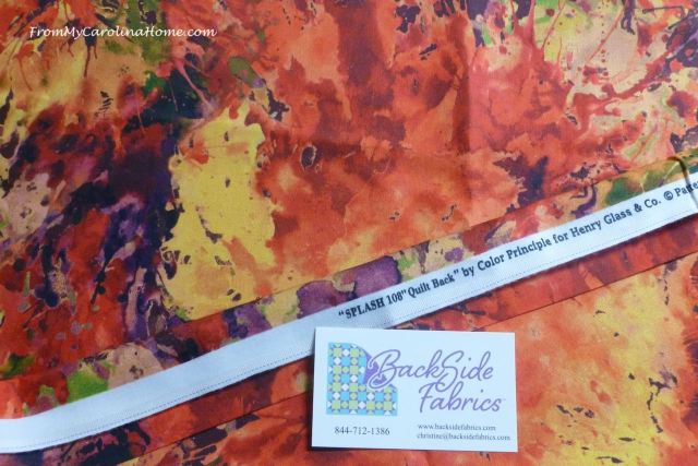 Backside Fabrics sent me this stunning backing fabric to use in a project by Henry Glass called Splash. With the wide 108-inch size, I can get more than one project on here at once. Vibrant colors make this one bright and cheerfully Autumn.