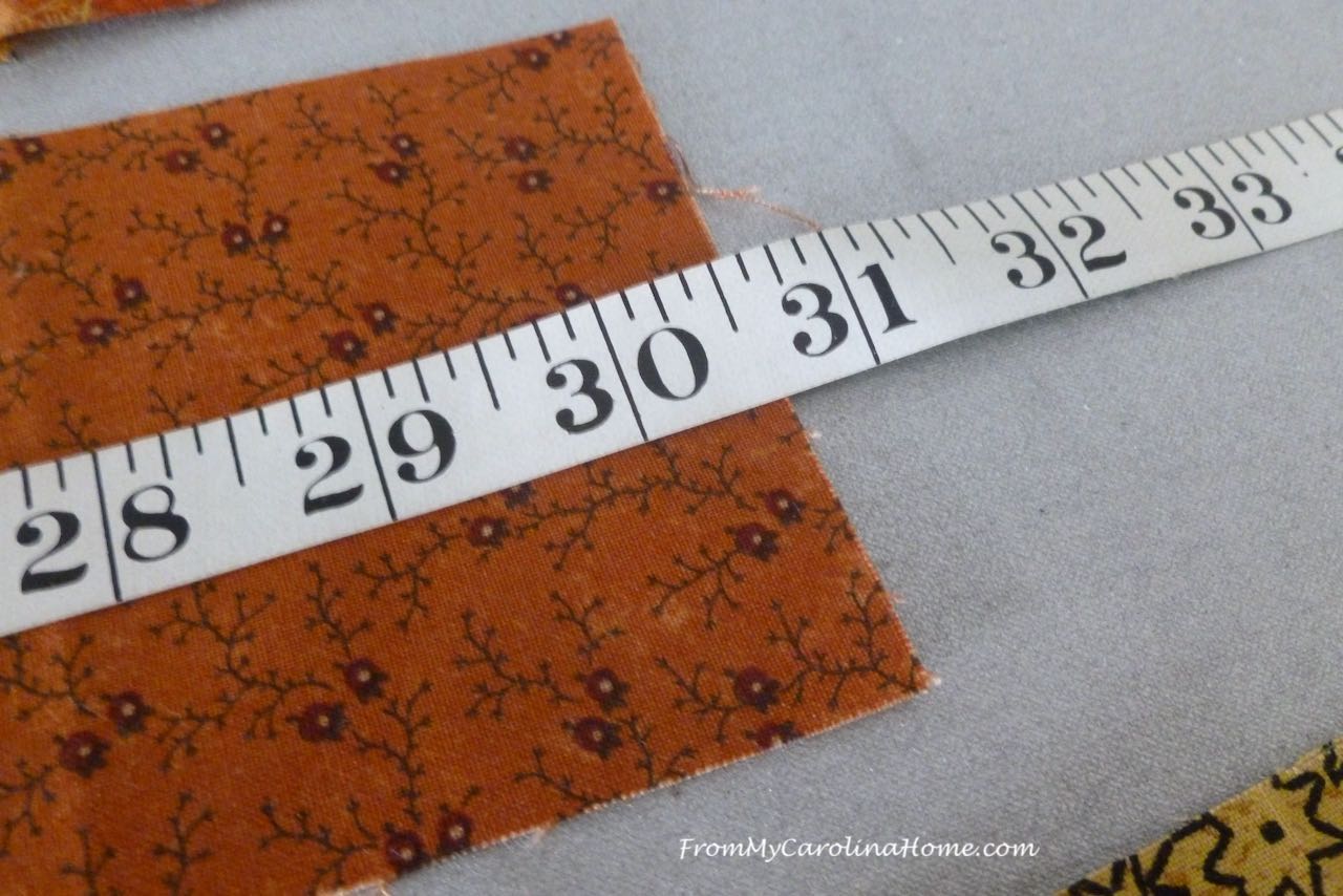Then audition the remaining two 12 patch borders to be sure you don’t have the same print adjacent. Sew the borders to the topper.