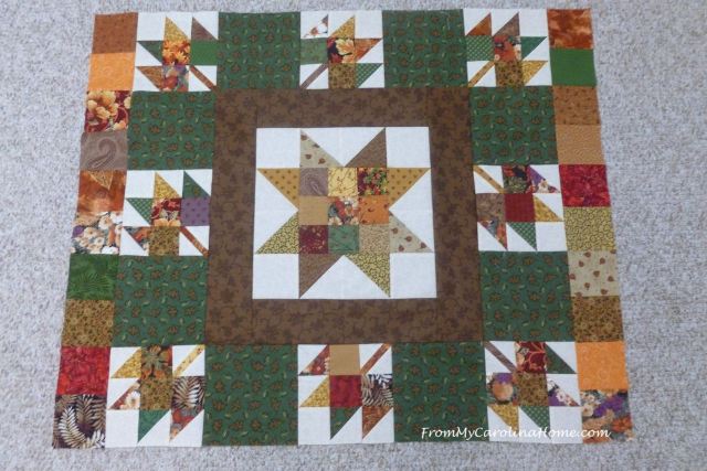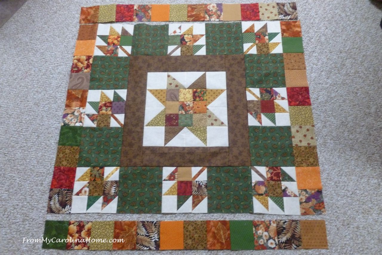 You can stop here for a table topper, or add more borders and scraps to make it larger.