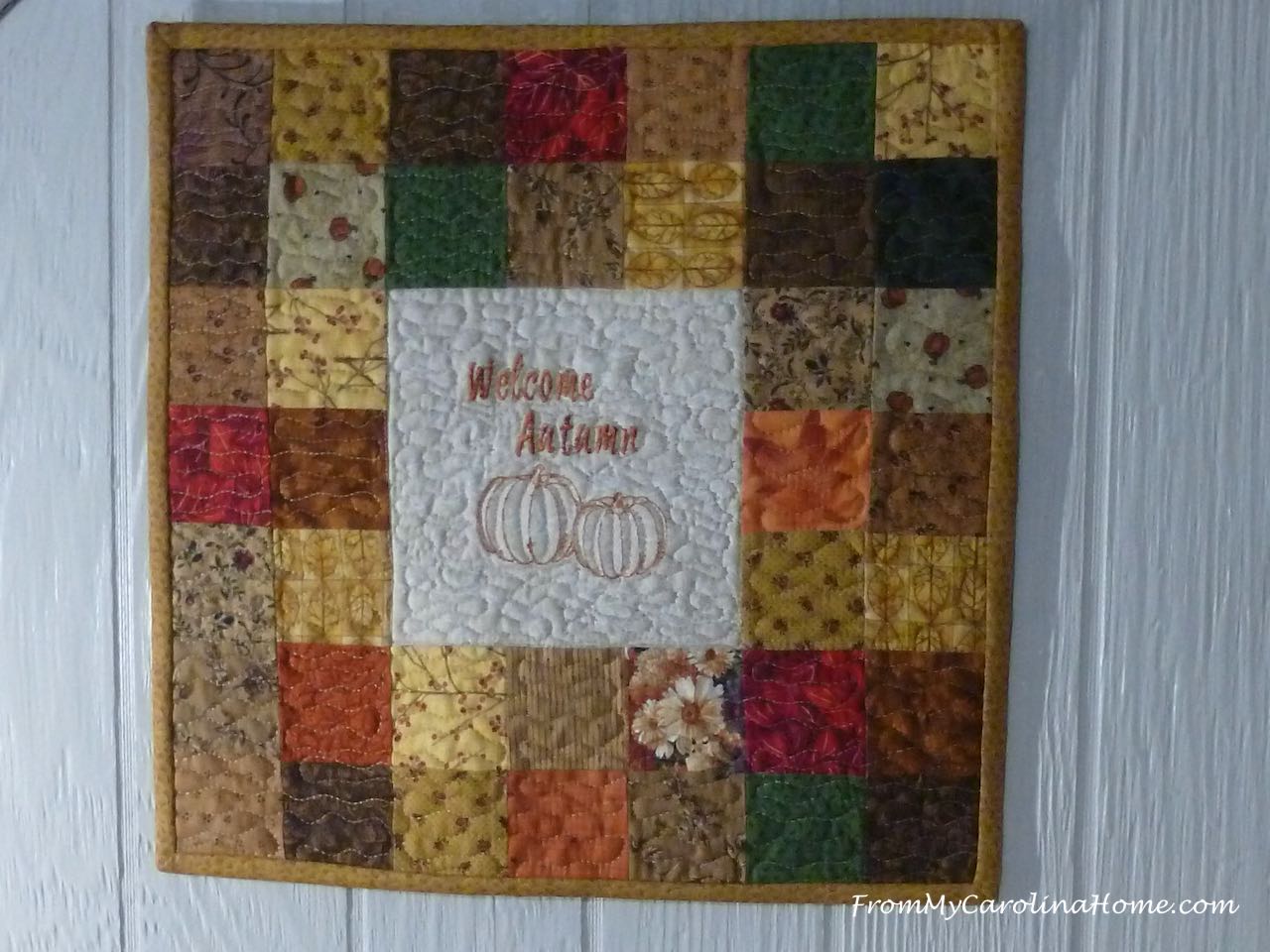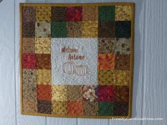I really like the Welcome Autumn wall hanging. It combines my favorite things embroidery and quilting.