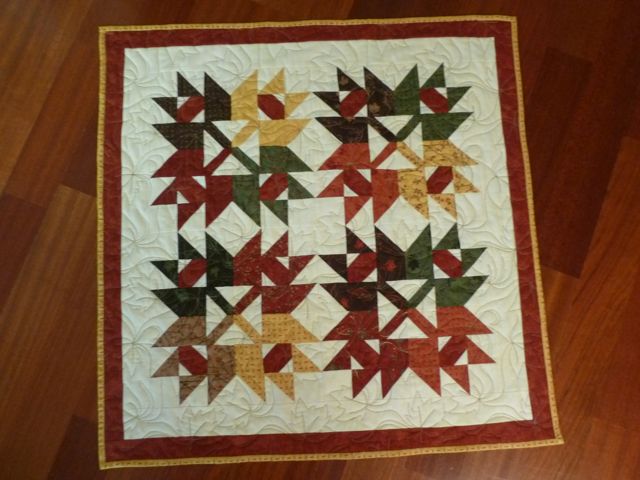 I love the Maple Star table topper, but I also liked the pumpkin tea towels appliqué as well as the fall leaves napkins. I’ve never tried embellishing napkins or tea towels and ai think I’d like to try that. I really need an embroidery machine.