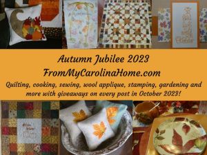 Join my Friends of From My Carolina Home Facebook group, and share your Autumn Jubilee creations!! Be sure to answer the questions so we can approve you right away. Those not answering the questions will be declined. There is also a prize for someone in that group sharing their progress and projects this month. Details will be in the group. If you are on Instagram, share with the tag #AutumnJubilee2023