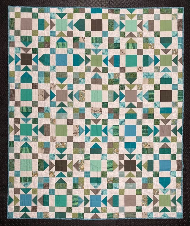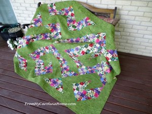 Scrap Dance Tango uses a lot of scraps in a creative way! Grab those boxes and bags for a fun design, originally a mystery quilt. Multiple sizes are given in the pattern from table topper up to king size.